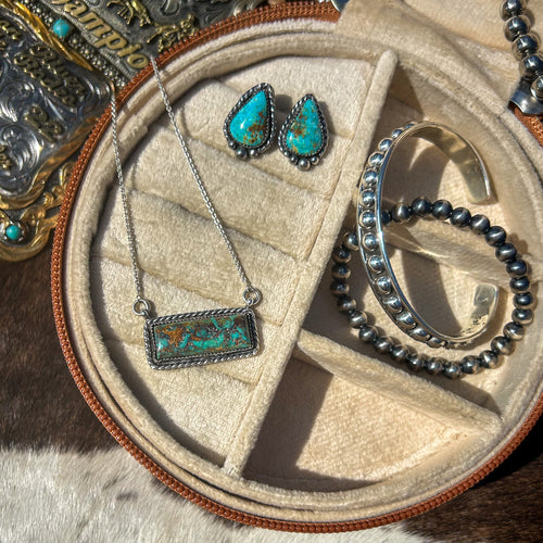 Shop below ready to ship pieces that have been handcrafted in our shop just for you! This month's items feature sterling silver, turquoise with a splash of Christmas cheer and more!